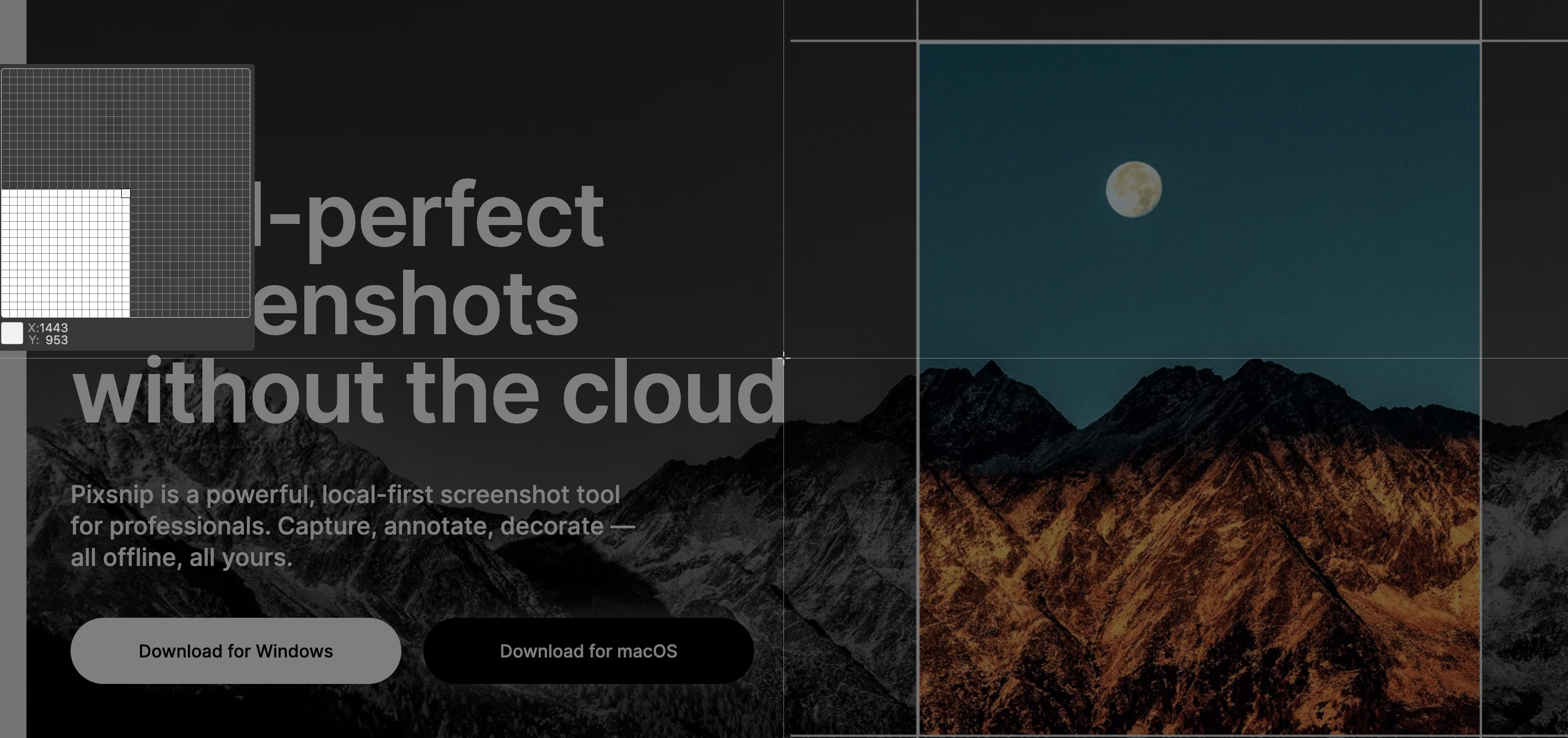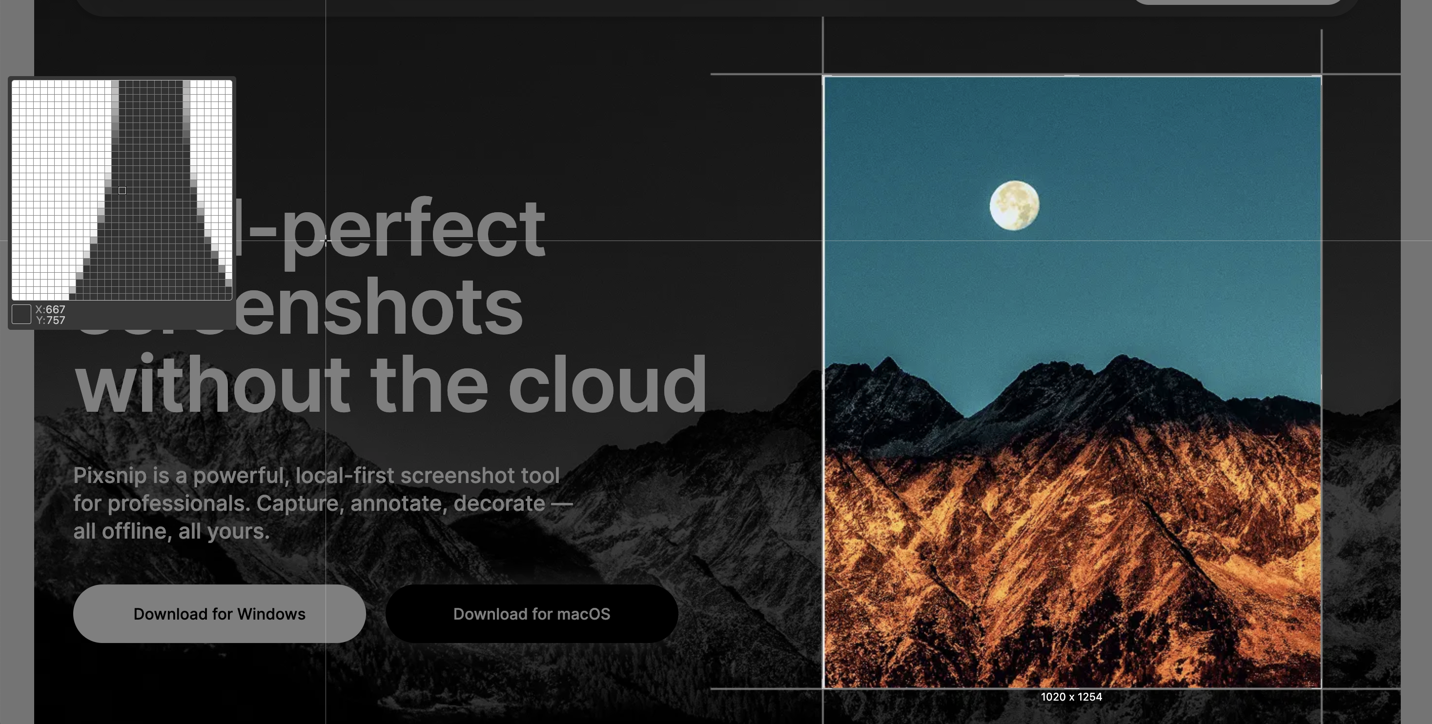 When you hover, Pixsnip displays a zoomed-in view of the area under your cursor. Great for: